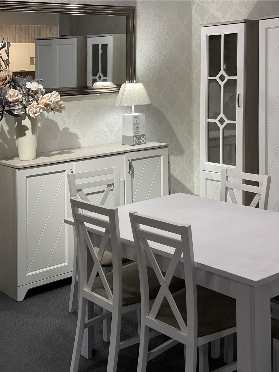 Meble systemowe PROWANSJA to kolekcja, która pozwala stworzyć wnętrze pełne harmonii, elegancji i domowego ciepła. Już od pierwszego spojrzenia przyciąga klasyczną formą oraz subtelnymi detalami inspirowanymi południem Francji. Co więcej, kolekcja łączy ponadczasowe wzornictwo z nowoczesnymi rozwiązaniami użytkowymi. Dzięki temu doskonale odnajduje się zarówno w salonie, jak i w jadalni czy sypialni.