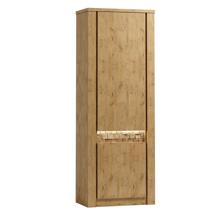 Smukła bryła pozwala dobrze wykorzystać przestrzeń pionową. Jednocześnie szafa nie zajmuje dużo miejsca przy ścianie. Dlatego sprawdzi się także w mniejszych salonach. Możesz ustawić ją samodzielnie lub połączyć z innymi meblami z kolekcji FIGARO. W efekcie stworzysz spójną i funkcjonalną zabudowę strefy dziennej.